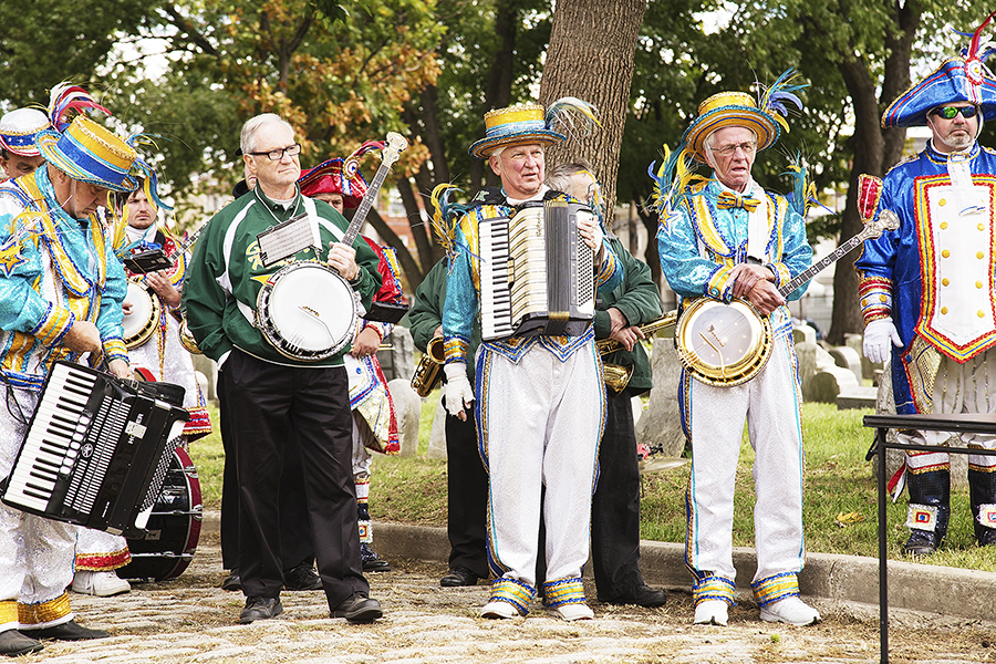 A crowd of local residents braved the autumn cold and looked on as speeches were made about the history and significance of the cemetery. The event was led by Jim Kingsmill, a cemetery trustee and key volunteer. Other speakers included a Revolutionary war reenactor who gave a monologue on what it would’ve been like to live in Fishtown during Palmer’s era; Rich Levins of the PTSSD; and Tony Lemma, a born and bred Fistowner and Vice President of The Home Depot. The home improvement retail company was responsible for recently bestowing the cemetery with a $15,000 grant for restoration. After an ensemble of Kensington Mummers performed a rendition of America the Beautiful, the historical marker was unveiled.