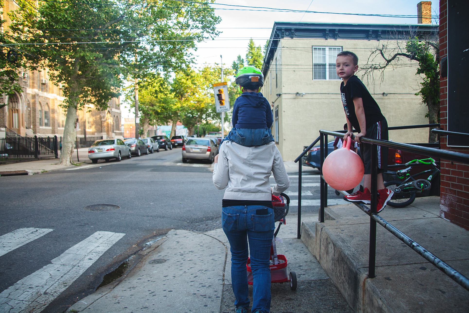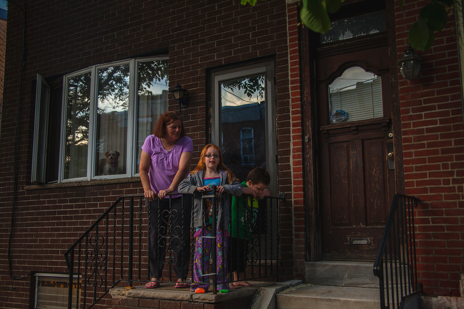 (left to right) Dolores Frazen, Josie Gotwalt, and Ryan Nash watch The Duffy String Band parade through Fishtown on May 21st, 2015.