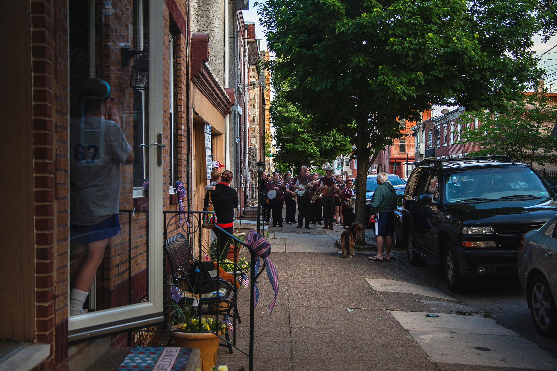 I caught up with the group on Gaul Street and followed them for about an hour as they zigzagged their way through the neighborhood’s side streets. As the band turned down each block, residents exited their homes with cell phones in hand, taking videos and photos.
