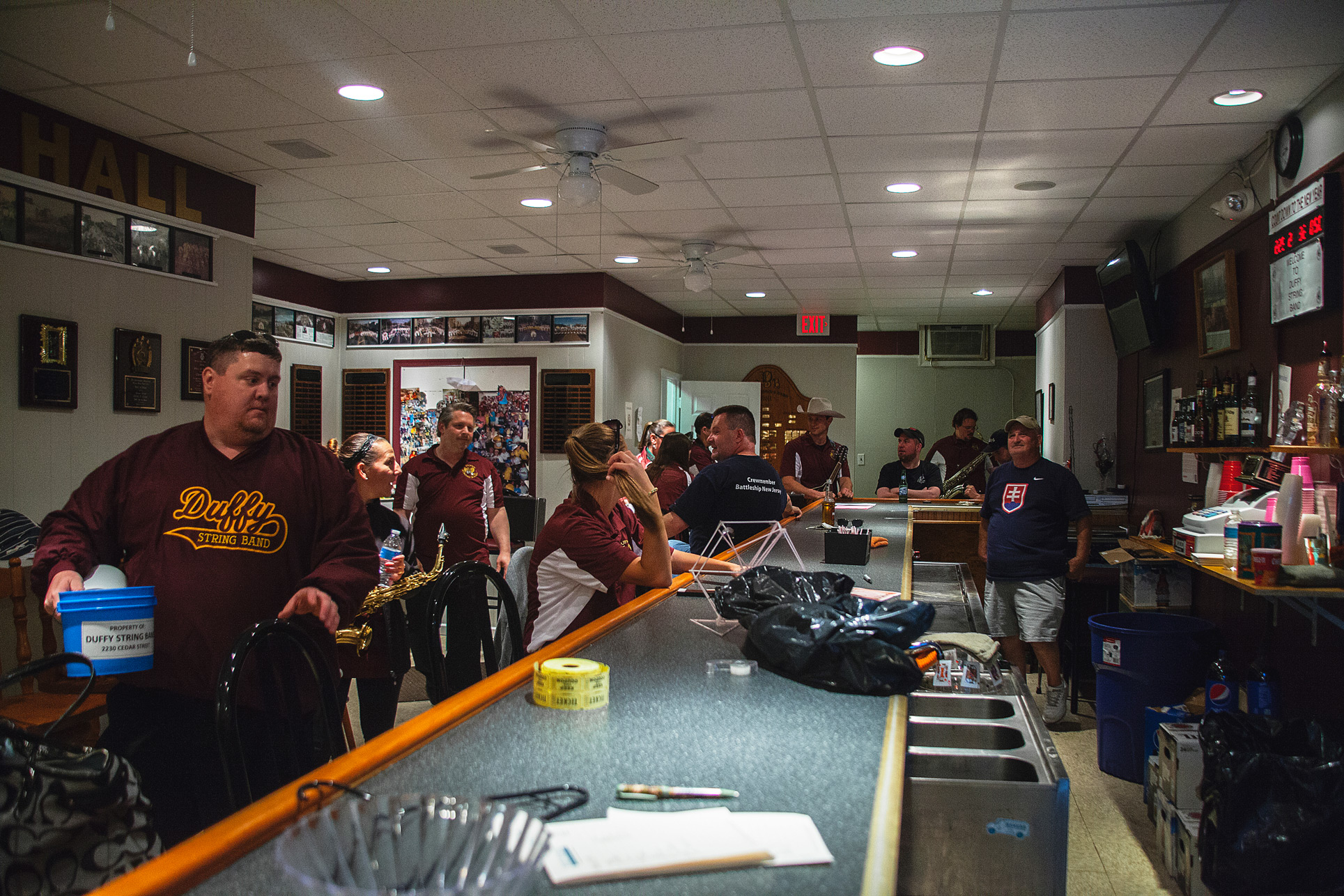 Eventually, the band hit Frankford Avenue, stopped at Pizza Brain, and made their way back to the Duffy String Band headquarters at 2300 Cedar Street. There, Jim Sexton told me about the band’s rich history, which dates back over half a century. Duffy String Band was originally the Firefighters Band and was founded by George Duffy, who served as captain until 1959. The band was then renamed in his honor.