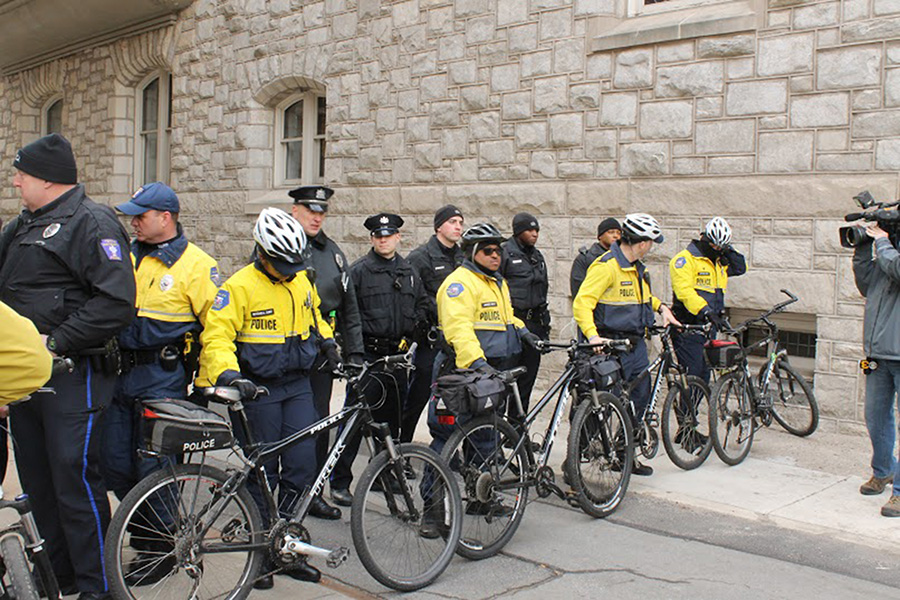 Many were members of the Stadium Stompers, a coalition comprised of both students and community members. Six members of Stadium Stompers were permitted to enter Sullivan Hall and attend the public meeting. The rest remained outside, separated from the Board of Trustees by a barrier of police officers.