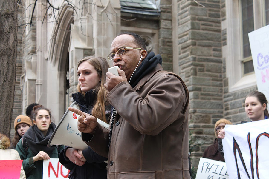 Speakers at the protest included students, a block captain, a reverend and a former Temple professor. While from vastly different backgrounds, each speaker had a similar message: “up with community, down with stadium,”— a phrase protesters chanted continuously.